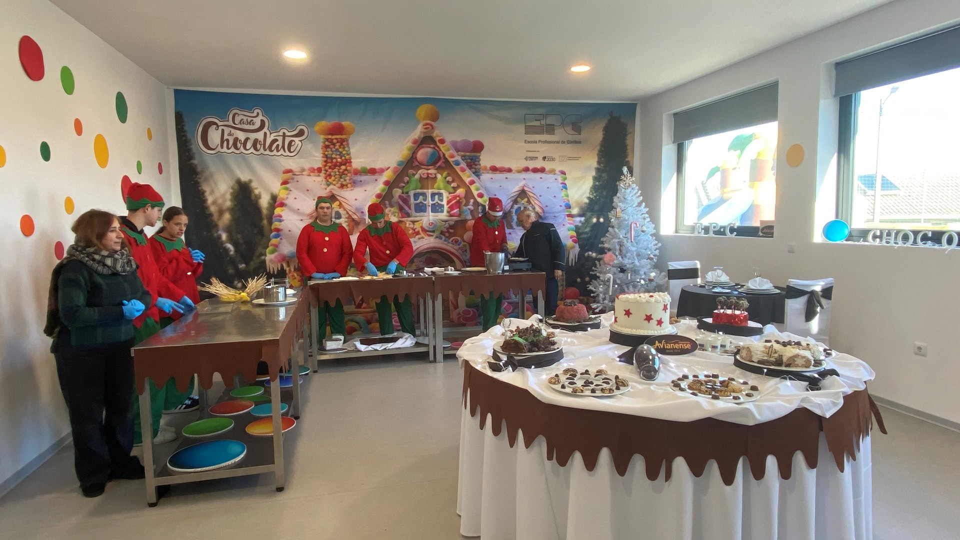 Nos dias 20, 21, 27 e 28 de dezembro de 2025 a Escola Profissional de Cinfães participou na Aldeia do Pai Natal, dinamizando a Casa do Chocolate.
